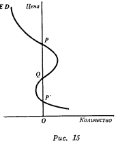 Если существует только одно положение стабильного равновесия (как на рис. 14), то влияние на цену изменений в условиях спроса или предложения довольно просто. Изменение вкусов всякого ведущего торговлю лица, выражающееся, например, в том, что при данной цене товара X, выраженной в товаре У, он решает купить, больше товара Х или продать меньше товара Х (это предполагает, что он желает продать больше или соответственно купить меньше товара У), должно привести к росту цены товара X, выраженной в товаре У (или к падению цены товара У, выраженной в товаре X). Это обязательно сдвинет кривую избыточного спроса вправо. То же самое справедливо и для рис. 15 (при условии, что мы исходим из положения стабильности), однако, если состояние стабильности будет обозначаться точкой Р', повышение цены может оказаться резким и непрерывным. 3. Теперь мы переходим к случаю множественного обмена (т. е. обмена, в котором участвует более двух товаров) и вступаем в совершенно новую область исследования. Насколько мне известно, общий вопрос стабильности в условиях множественного обмена никогда прежде не обсуждался, и по этому поводу можно выразить сожаление - ведь даже при первом взгляде на предмет возникают некоторые весьма интересные и важные вопросы. Что же мы подразумеваем под стабильностью в условиях множественного обмена? Ясно, что, как и прежде имеется в виду следующее: падение цены товара X, выраженной в стандартном товаре, приводит к превышению спроса на этот товар над его предложением. Но должны ли мы теперь полагать, что результат падения цены будет обязательно таким, когда: а) цены прочих товаров заданы и б) цены прочих товаров установлены на таком уровне, что равновесие на соответствующих рынках сохраняется? Ответ, я полагаю, состоит в том, что в действительности самое важное - то, что происходит, когда цены всех прочих товаров приведены к указанному уровню. Если незначительное повышение цены не приводит к превышению предложения над спросом (при том, что учтены все соответствующие последствия этого роста), то совсем не обнаружится тенденции к восстановлению равновесия. Рынок будет скорее «уходить» от состояния равновесия, чем приближаться к нему. Однако, если не удовлетворяется только первое условие [Строго говоря, следует различать несколько условий, при которых повышение цены товара Х приводит к превышению предложения над спросом: а) когда цены всех остальных товаров заданы, б) когда цена товара Y установлена на таком уровне, что на рынке этого товара поддерживается равновесие, в) когда цены товаров Y и Z приведены к соответствующему уровню; цены прочих товаров также изменяются, пока не будут доведены до этого уровня. Система перестает быть нестабильной, как только выполняется последнее из этих условий, однако совершенная стабильность предполагает соблюдение их всех.], тенденция к нарушению равновесия в конце концов перестанет действовать, хотя и не сама по себе: она перестает действовать благодаря соответствующим изменениям на других рынках, а не только благодаря функционированию рынка товара X. Легко видеть, что в случае, подобном рассмотренному, установление равновесной системы цен является сравнительно нелегким делом, но, коль скоро равновесие достигнуто, это все-таки будет на самом деле стабильное равновесие. И удаление системы от этого рав