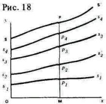 Предположим, например, что мы подразделяем издержки производства нашей представительной фирмы, когда количество сукна ОМ производится при помощи факторов, обозначенных: (1) Мр1 - цена предложения используемой шерсти и других видов оборотного капитала; (2) р1р2 - износ и амортизация зданий, машин и прочего основного капитала; (3) p2p3, — процент и страховка на весь капитал; (4) р3p4 - заработная плата работающих на фабрике, и (5) р4Р - валовой управленческий доход, доход тех, кто берет на себя предпринимательский риск, жалованье инженерно-технических работников. Так, по мере продвижения М от О вправо, каждая из точек р1, р2, р3, p4 образует кривую, а конечная кривая предложения, проведенная через точку Р, следовательно, будет образована путем наложения одной на другую кривых предложения отдельных факторов производства сукна. Не следует забывать, что эти цены предложения представляют собой не цены единиц отдельных факторов, а цены тех количеств отдельных факторов, которые требуются для производства одного ярда сукна. Так, например, p3p4 - это цена предложения не любого определенного количества труда, но лишь того его количества, которое используется для изготовления одного ярда сукна там, где совокупная продукция равна ОМ ярдов (см. ранее, § 3). Здесь нет необходимости заниматься рассмотрением того, следует ли выделять земельную ренту на занимаемую фабрикой площадь в самостоятельную категорию; этот вопрос относится к группе проблем, которые будут исследованы позднее. Мы здесь также оставляем в стороне тарифы и налоги, которые фабриканту приходится учитывать в своих издержках. ]. По мере сокращения или возрастания ежегодного количества товара, цена предложения может либо повышаться, либо снижаться, она может даже попеременно повышаться и падать [То есть точка, отклоняющаяся на кривой предложения вправо, может пойти либо вверх, либо вниз или даже попеременно перемещаться то вверх, то вниз; иными словами, кривая предложения может иметь позитивное или негативное склонение, а иногда даже одни ее отрезки могут иметь позитивное склонение, тогда как другие - негативное (см. наш текст, кн. III гл. III § 5, сноска 2).]. Дело в том, что, когда природа оказывает упорное сопротивление усилиям человека вырвать у нее большее количество сырья, причем на данной стадии отсутствуют достаточные возможности для более экономичной переработки этого сырья, цена предложения повышается; но если при этом объем производства возрастает, то, очевидно, становится выгодным в большей степени заменить ручной труд машинным и мускульную силу — паровой энергией; иными словами, увеличение объема производства сократило бы затраты на производство товара нашей представительной фирмы. Однако те случаи, когда цена предложения снижается по мере роста количества продукции, содержат в себе собственные специфические трудности, рассмотрение которых мы отложим до гл. XII данной книги. § 6. Поэтому, когда количество продукции (в единицу времени) таково, что цена спроса выше цены предложения, продавцы получают более чем достаточно, чтобы они сочли выгодным доставить указанное количество товара на рынок; при этом вступает в действие активная сила, стимулирующая увеличение предлагаемого к продаже количества товара. С другой стороны, когда количество произведенного товара таково, что цена спроса ниж