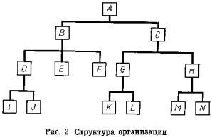 Определим сектор как группу рабочих с одним руководителем. Сектора группируются в более крупные структурные единицы. Проблема состоит в определении принципов группировки работ в сектора, а секторов - в отделы и более крупные структурные единицы. Почему, например, элемент К должен входить в G, а не в F или Е (см. рис. 2)? Классический подход различает четыре фактора, которые влияют на решение рассматриваемой проблемы. 1. Диапазон контроля. Группировка не должна приводить к перегрузке руководителя большим числом подчиненных. Этот предел именуется диапазоном контроля. 2. Экономичность масштаба. Объединение однородных работ может дать экономию средств вследствие расширения масштабов производства. 3. Координация. Группировка должна обеспечить координацию работ, и, при прочих равных условиях, выбранный вариант должен минимизировать проблемы координации. 4. Содержание работы. Содержание работ должно учитываться при выборе структурного уровня их подчинения. «Ключевые» работы, например, требуют внимания на высшем уровне, поэтому их необходимо группировать непосредственно под высшим руководством. Перечисленные факторы могут действовать в противоположном направлении; например, группировка, улучшающая координацию, может противоречить варианту максимальной экономии от увеличения масштабов деятельности. ДИАПАЗОН КОНТРОЛЯ Еще Файоль и Урвик выступали за строгое соблюдение верхнего предела числа подчиненных у одного руководителя. Урвик, консультант по управлению, утверждал, что «идеальное число подчиненных у всех высших руководителей... должно быть равно четырем...», хотя «на самом нижнем уровне организации, на который делегируется ответственность за выполнение конкретных задач, а не за руководство, это число может составить восемь или двенадцать». Это положение приобрело известность как принцип диапазона контроля.