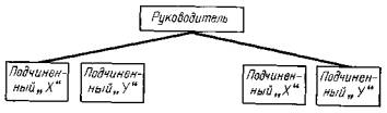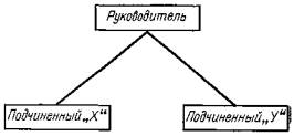 Рис. 5. Прямые групповые связи А и X в присутствии Y А и У в присутствии X. Грейкунас установил, что все три вида отношений потенциально требуют затрат времени руководителя. Даже перекрестные отношения могут требовать от руководителя деятельности в качестве посредника. Однако, если работа подчиненных не взаимосвязана, нет необходимости рассматривать перекрестные и групповые отношения. Грейкунас выразил общее число отношений формулой