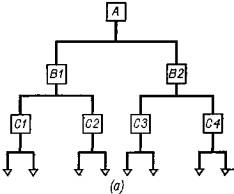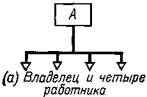 Рис 7 В структуре (а) можно было бы сократить уровень С и получить структуру (b) при условии, если бы оказалось возможным упразднить либо делегировать 80% работы уровня С и 40% работы уровня B. В ситуации, представленной на рис. 7а, можно целиком сократить уровень управления С и получить структуру, показанную на рис. 76, в том случае, если 80% работы этого уровня и 40 % работы уровня В можно сократить или передать помощникам, подчиненным либо, скорее всего. специалистам или ЭВМ. Как показали исследования, руководители действительно затрачивают часть времени на деятельность, не связанную с руководством непосредственными подчиненными. Приводимая ниже таблица из книги Д. Коупмэна «На что расходует свое время руководитель» G. Соpеman. How the Executive Spends His Time. Business Publications, London, 1963. показывает структуру деятельности 58 руководителей (см. табл. 2). Таблица 2 Структура деятельности 58 руководителей