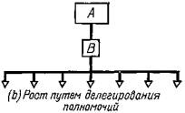 Рис. 8. Группировка работ как реакция на рост нагрузки ГРУППИРОВКА В ЦЕЛЯХ ПОЛУЧЕНИЯ ЭКОНОМИИ ОТ МАСШТАБОВ ДЕЯТЕЛЬНОСТИ Когда однородные работы группируются вместе, операции ведутся в большем масштабе, что является источником экономии. Такой принцип группировки в целях получения экономии известен в литературе по управлению под названием группировки по процессам. Точнее было бы назвать это группировкой для получения экономии от масштабов деятельности, как было показано рядом экономистов. Первым их подробно рассмотрел Дж. М. Кларк в «Вопросах экономики накладных расходов» См.: J. M. Clark. Studies in the Economics of Overhead Cost, 1923, а позднее кембриджский экономист Э. Робинсон в книге «Структура конкурентной экономики» [См.: E. A. G. Rоbinsоd. The Structure of Competitive Industry, 1931.]. Робинсон сгруппировал виды экономии при увеличении масштабов деятельности по следующим категориям: техническая, управленческая, финансовая, торговая, а также - экономия за счет повышения загрузки работников. Экономия технических ресурсов Экономия технических ресурсов при росте масштабов деятельности проявляется в двух аспектах. I. Использование оборудования. Дорогое оборудование требует соответствующих масштабов производства, оправдывающих его приобретение. Подразделение может сложиться вокруг одной машины, например вокруг ЭВМ, обрабатывающей информацию, которую ранее обрабатывало несколько отделов, причем использование ЭВМ даже при неполной загрузке может все-таки давать экономию. Применение одной крупной машины может оказаться более выгодным, чем установка меньших ЭВМ в каждом отделе. II. Углубление специализации. С ростом масштабов деятельности появляется больше возможностей для углубления специализации. Однако Робинсон подчеркивает, что возможна и противоположная тенденция; так, например, установка счетно-перфорационной техники может привести к возникновению ручных операций. Управленческая экономия Группировка сходных работ дает возможность специализировать управляющих. Например, централизация бухгалтерского учета позволяет специализировать одного бухгалтера на начислении налогов, другого - на учете затрат по управлению и т. п. и таким образом лучше использовать ограниченные ресурсы специалистов. Компания не всегда в состоянии содержать десять первоклассных бухгалтеров, возглавляющих десять самостоятельных секторов в разных подразделениях, но она может оплатить работу одного первоклассного бухгалтера, стоящего во главе всего бухгалтерского аппарата. С ростом компании не возникает необходимости в таком же росте специализированных секций или отделов. Например, если все прогнозирование сбыта централизовано, а фирма расширяет производство, стоимость прогноза сбыта на единицу продукции будет снижаться. В то же время такой экономии может и не быть, если каждое отделение фирмы имеет свою службу прогнозирования сбыта. Финансовая и торговая экономия Все закупки могут быть централизованы с целью не только использовать знания специалистов, но и получить торговые скидки на приобретение крупных партий товаров. Аналогично получение кредитов целесообразно централизовать не только для уменьшения суммарной потребности в них, но также и потому, что один общий для компании отдел в состоянии регулировать уровень кредитных ставок и объемы получаемых средств. Эконо